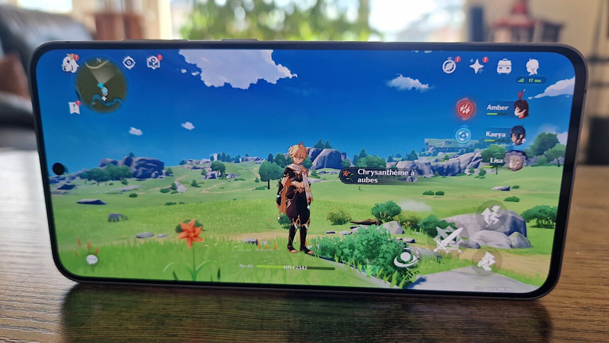 Mais ce n’est pas vraiment dramatique, car les prestations globales de l’Exynos 2400 s’avèrent très bonnes. En effet, le niveau de performances assuré par le processeur de Samsung est tout à fait suffisant pour obtenir une excellente réactivité, quelle que soit l’application utilisée, même avec les jeux en 3D exigeants, comme Fortnite ou Genshin Impact.
