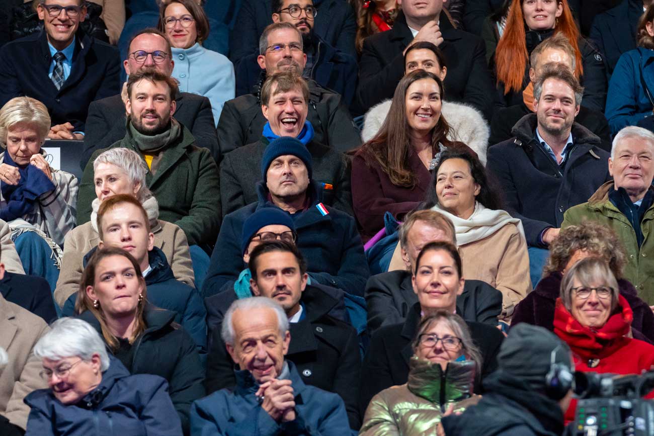 Le grand-duc Henri et la grande-duchesse Maria Teresa ont pris place dans la tribune, ainsi que d’autres princes et princesses de la famille grand-ducale. Le prince Félix et son épouse, la princesse Claire, le prince Louis et le prince Sébastien représentaient la fratrie du nouveau grand-duc. Seule la princesse Alexandra, dont la grossesse est très avancée, était absente. La fratrie du grand-duc Henri était également présente. La princesse Marie-Astrid et son époux, l’archiduc Carl Christian d’Autriche étaient présents, ainsi que le prince Jean et son épouse, la princesse Diane, la princesse Margaretha et son époux, le prince Nikolaus de Liechtenstein, et le prince Guillaume avec son épouse, la princesse Sibilla.
