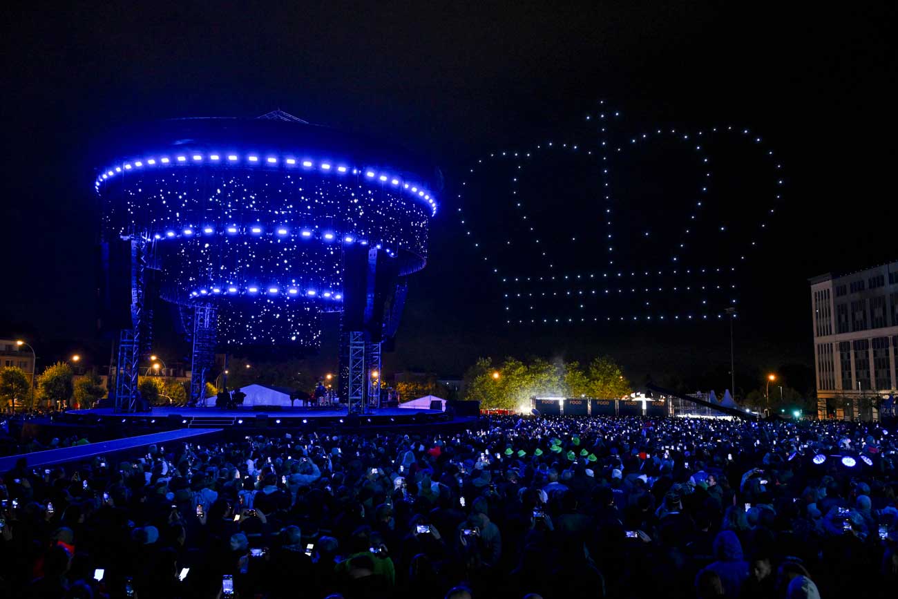 Une couronne est formée par des drones lumineux dans le ciel de la capitale luxembourgeoise (Photo : SIP / Frédéric Sierakowski)