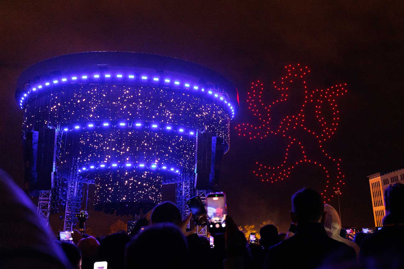 Les souverains luxembourgeois admirent le ballet de drones dans le ciel (Photo : SIP / Emmanuel Claude)