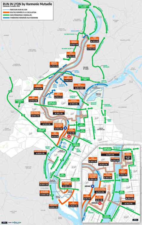 Des restrictions de circulation et de stationnement sont mises en place ce dimanche 5 octobre liées à l’organisation de la Run in Lyon. Entre 3h et 18h, voitures et vélos doivent prendre leurs précautions.