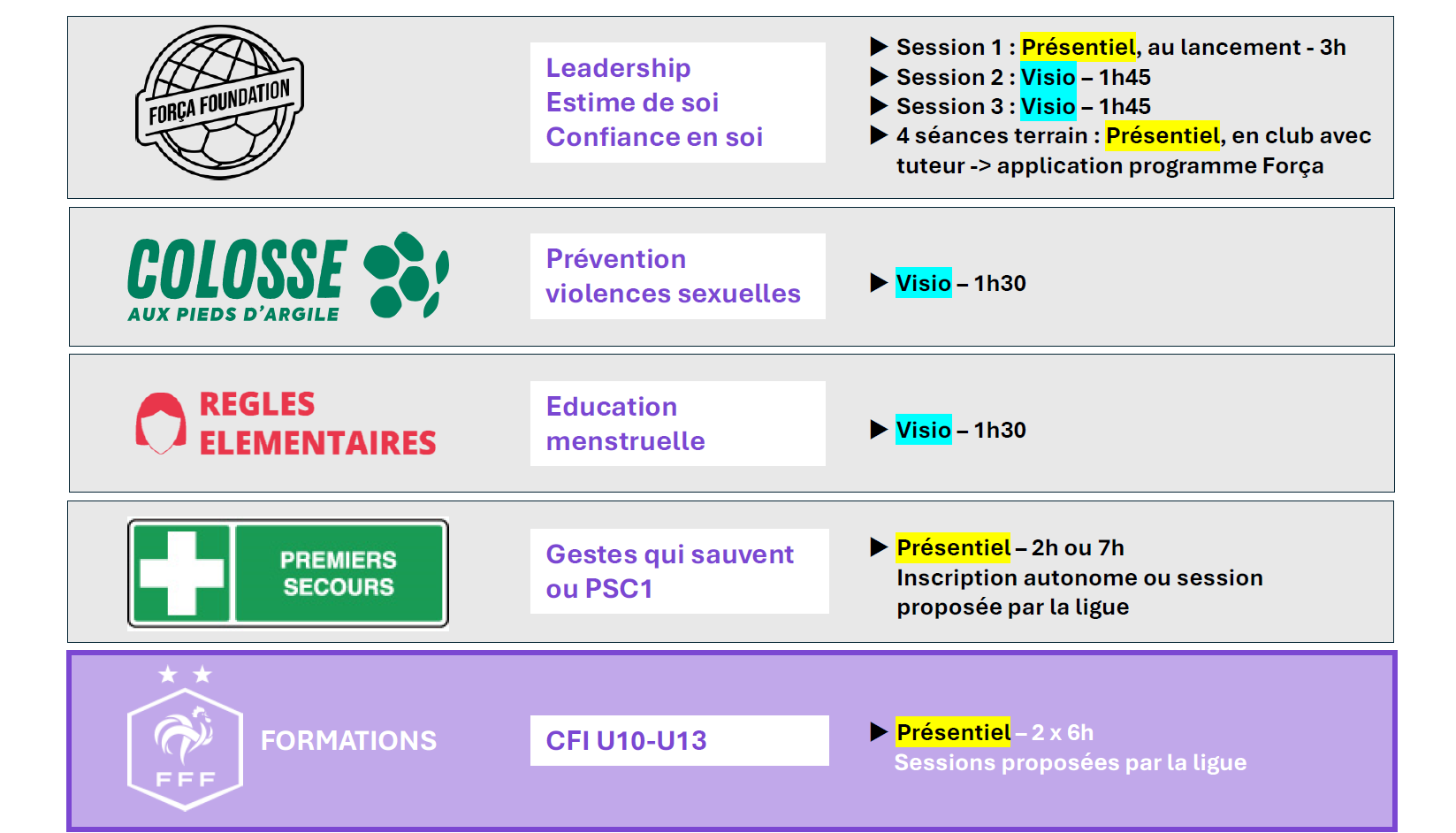 - Préparer l’accès à une formation certifiante d’éducatrice proposée par la FFF.