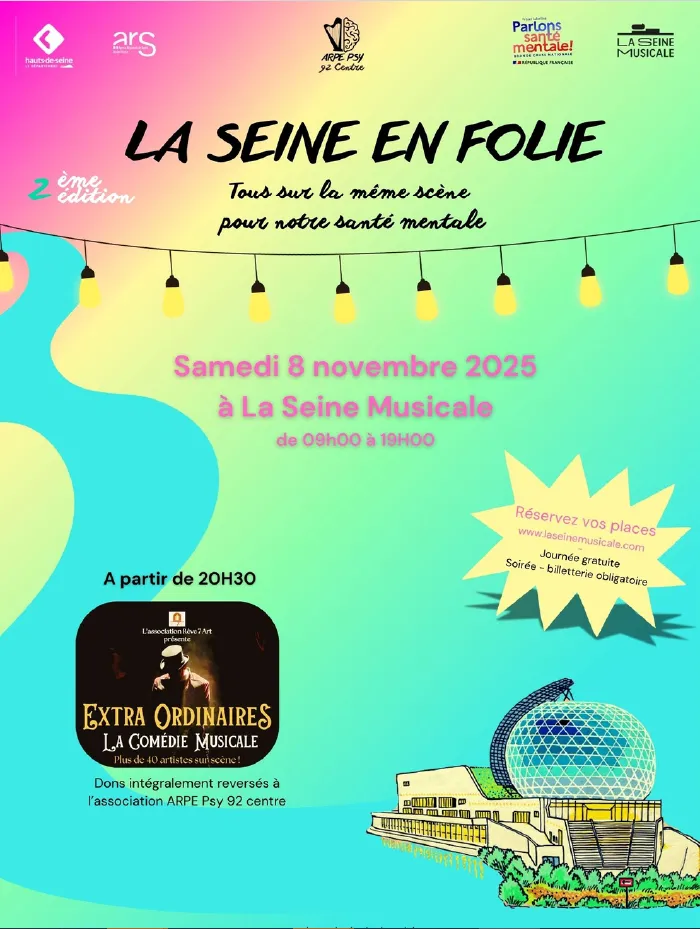 Organisée avec le soutien de la Région le 8 novembre 2025 à la Seine Musicale, à Boulogne-Billancourt (92), la Seine en Folie, dont c’est la 2de édition, est une journée exceptionnelle autour de la santé mentale, de la culture et du partage.