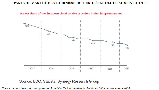 La part de marché des entreprises UE du cloud au sein de l'UE se réduitLa part de marché des entreprises UE du cloud au sein de l’UE se réduit
