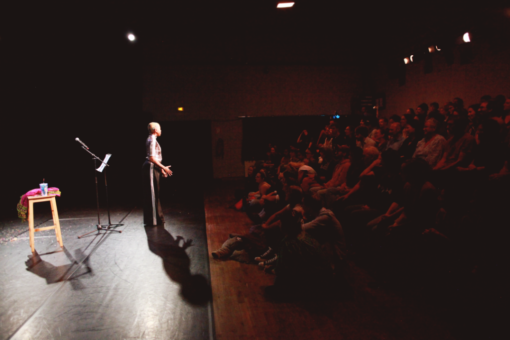 Autre spectacle, autre type de laissés-pour-compte, avec Le monde brûle et moi je m’achète des Nike. Cette fois-ci, le déclassement est racial. Dans une mise en scène à la lisière du slam et du stand-up, la comédienne d’origine comorienne Anturia Soilihi se demande à voix haute comment devenir un coquelicot « quand on a grandi dans la merde ».