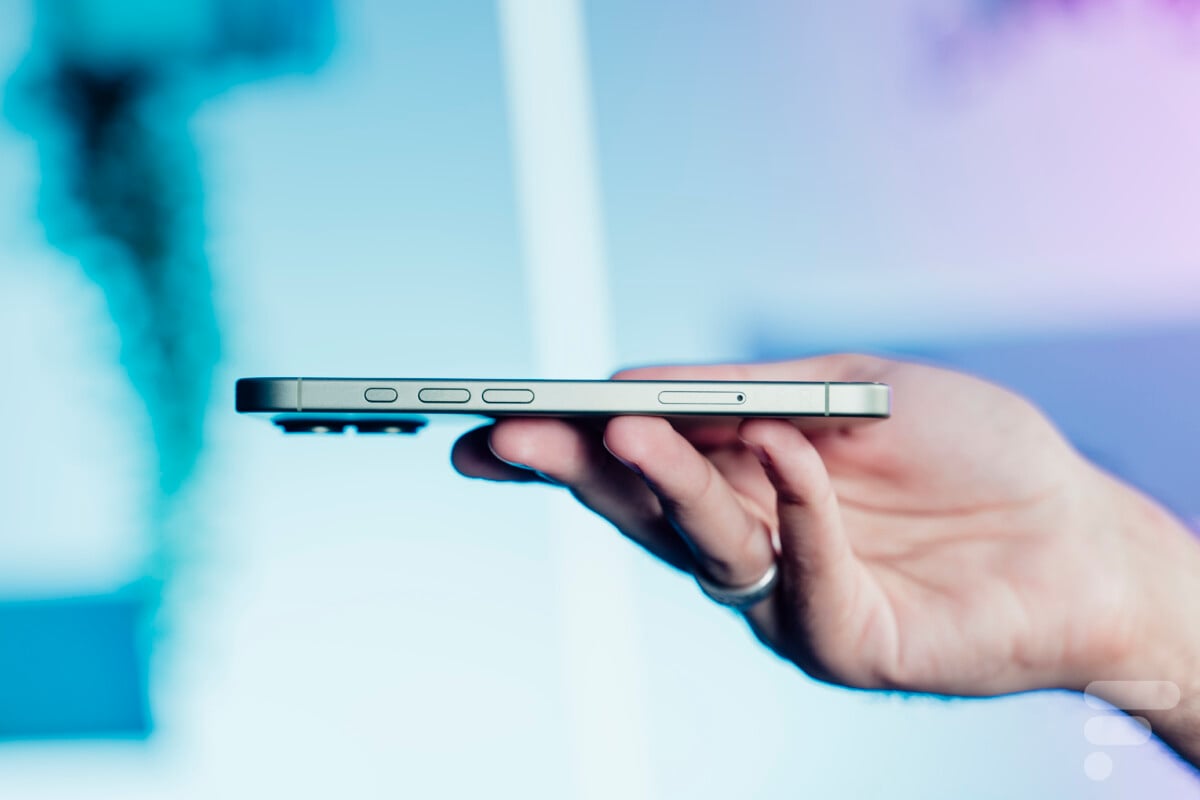 Vous noterez au passage aussi que le tiroir SIM est toujours de la partie sur la tranche gauche de l’appareil. L’iPhone 17 en France n’a pas droit à un fonctionnement 100 % eSIM contrairement à l’iPhone Air.