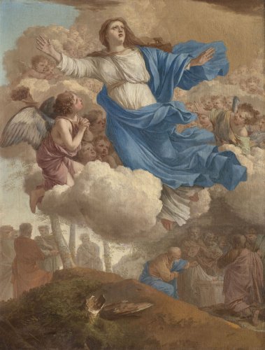 La plus importante Assomption de Laurent de La Hyre reste bien sûr la toile (ill. 2) de 1635, commandée pour le maître-autel de l’église du couvent des Capucins de la rue Saint-Honoré, qui trône au Louvre et constitua longtemps l’œuvre la plus célèbre de l’artiste. Cette composition, sans doute bien trop peu regardée aujourd’hui dans les salles, contribua assurément à dynamiser la carrière parisienne de l’artiste, qui livra deux Mays de Notre-Dame [1] en 1635 puis en 1637. La Hyre livra deux autres grands tableaux d’autel sur ce thème, connus par les sources mais pourtant disparus : l’un d’eux ornait la cathédrale de Soissons jusqu’à la Première Guerre mondiale, l’autre était conservé à l’hôpital des Quinze-Vingts jusqu’à la Révolution mais tous deux ont a priori été perdus dans les soubresauts de l’Histoire, en dépit de leurs dimensions !