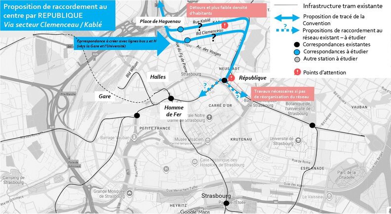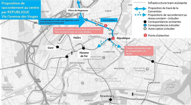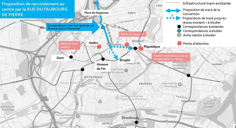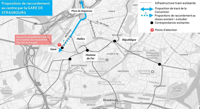 Tracé par la gare de StrasbourgPhoto : Convention citoyenne tram nord