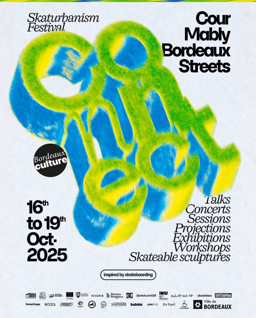 Du 16 au 19 octobre, prépare-toi à voir Bordeaux sous un tout nouveau jour ! Le festival Connect revient pour sa deuxième édition et transforme la Cour Mably et les rues bordelaises en terrain d’expression libre, où skate, urbanisme et art s’entremêlent. Ici, pas de clichés : le skate devient un outil de réflexion, d’expérimentation et de création.
