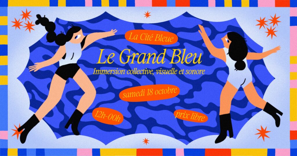 Le samedi 12 octobre, la Cité Bleue t’invite à au « Grand Bleu », une immersion collective, visuelle et sonore où créativité et convivialité se rencontrent. L’entrée est à prix libre, avec des préventes gratuites disponibles, alors pas d’excuse pour manquer cette journée.