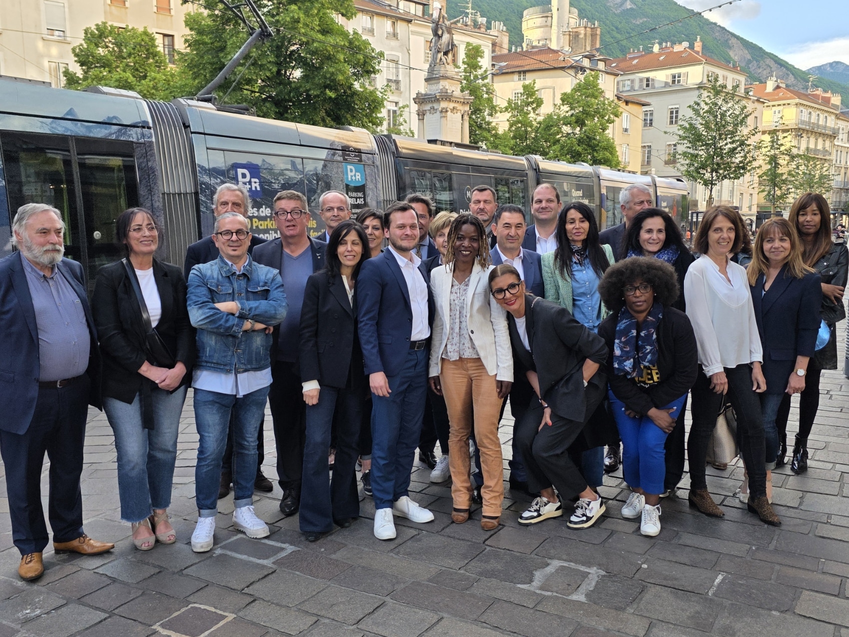 Photo de famille de quelques-unes des personnalités grenobloise constituant le collectif Réconcilier Grenoble autour d’Alain Carignon. © Joël Kermabon – Place Gre’net