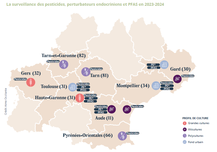 Ces molécules ont été recherchées sur 10 sites en Occitanie :