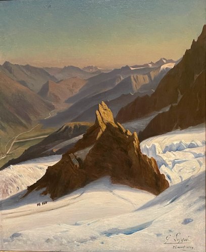 Contemporain d’Eugène Boudin, Gabriel Loppé est né une quinzaine d’années avant les principaux peintres impressionnistes. Se spécialisant très tôt dans la peinture de montagnes, il développa une esthétique assez différente de ses contemporains, certainement en raison des sujets représentés, qui n’étaient pas encore très fréquents au XIXe. Ce n’est en effet que dans la seconde moitié de ce siècle que se développa le tourisme alpin, un phénomène d’ailleurs contemporain de l’apparition des séjours à la plage et des bains de mer qui, eux aussi, intéressèrent les peintres (voir par exemple cet article).