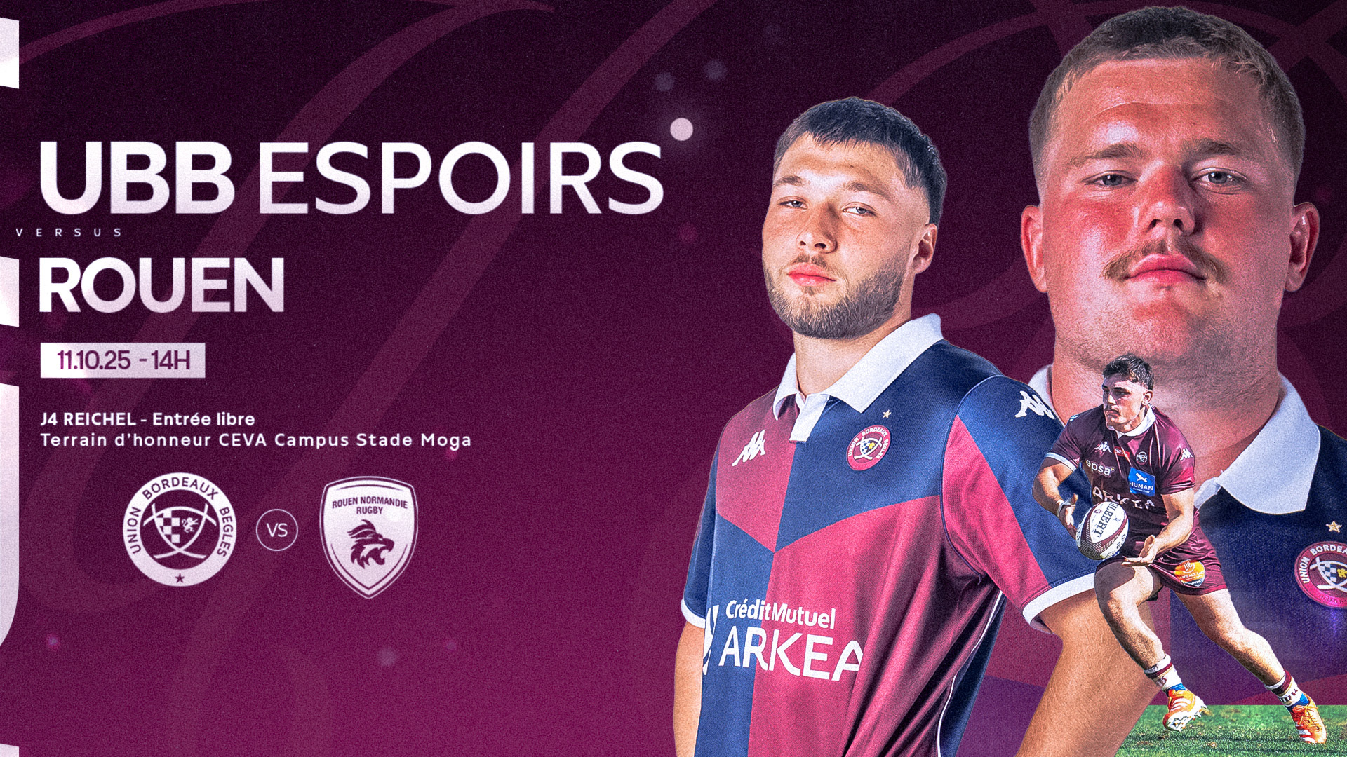 Venez nombreux soutenir nos Espoirs de l’UBB au CEVA Campus – Stade Moga ce samedi 11 octobre à 14h, face à Rouen !