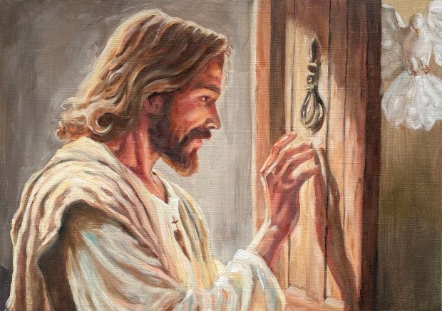Cette Grâce particulière, on la retrouve dans les tableaux religieux peints par Eléonore. Sa toile « Jésus frappe à la porte » en est l’un des plus beaux exemples. Réalisée pour le faire-part d’ordination diaconale d’un séminariste toulonnais converti par cette Parole du Christ dans l’Apocalypse, « Voici, je me tiens à la porte, et je frappe » (Ap 3,20), ce tableau a aussi beaucoup marqué Eléonore. « Cette commande a eu lieu au moment difficile où je me lançais dans cette aventure, elle m’a permis de confier mon parcours au Seigneur ! »