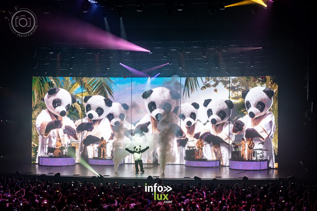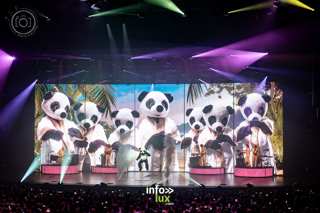 Et quand Les Crocodiles résonnent, Julien Doré lance avec malice : « Allez, on fait la chenille ! » Aussitôt, des cortèges se forment depuis la fosse jusqu’aux gradins, serpentant entre les rangées dans une joyeuse pagaille. Les crocodiles dansent, les pandas s’accrochent, et la salle devient une jungle festive en mouvement.