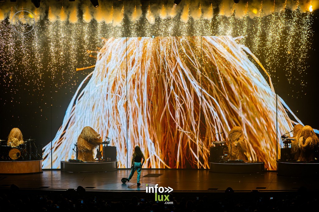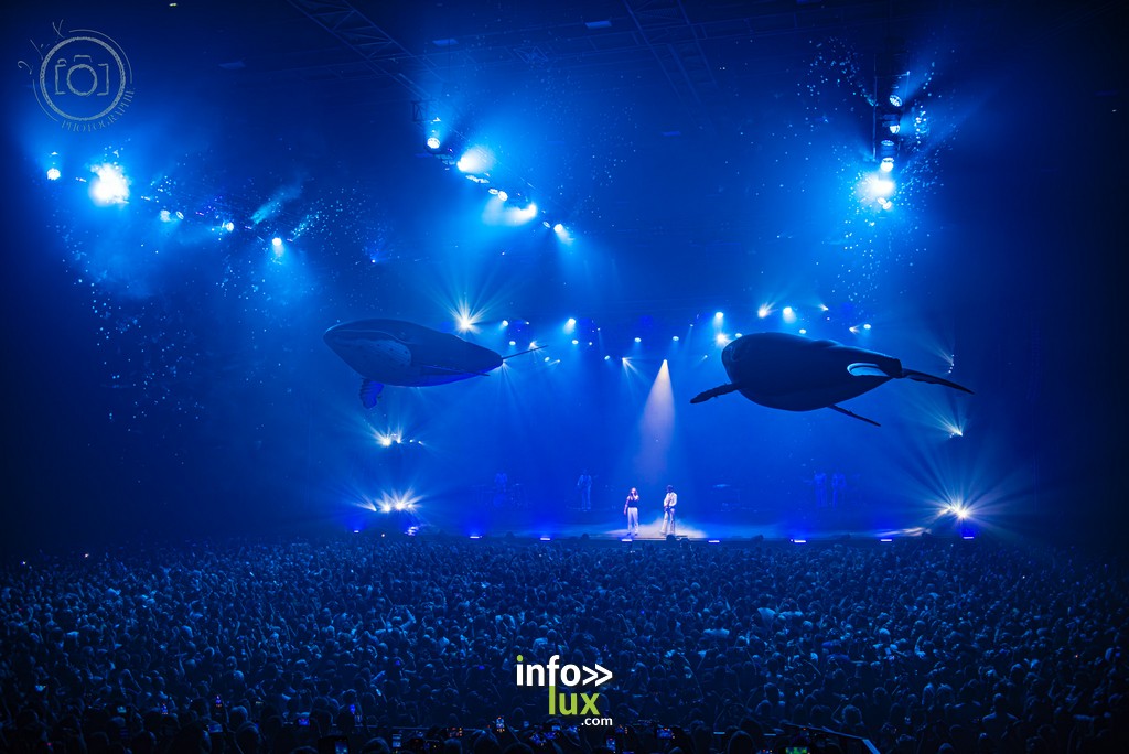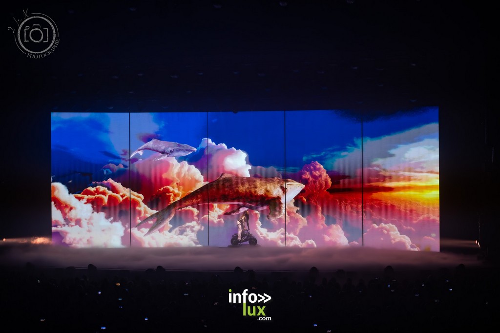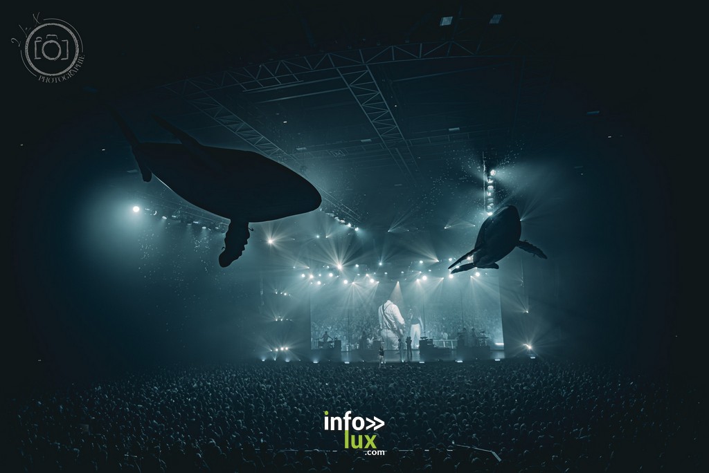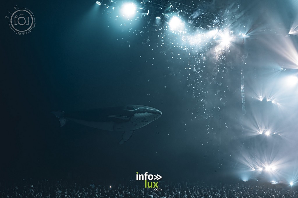 Le point culminant du concert ? L’apparition de gigantesques baleines lumineuses flottant au-dessus du public, glissant lentement dans les airs comme des créatures mythiques. Ce moment, accompagné de la chanson La Fièvre, a provoqué une vague d’émotion collective, entre frissons et applaudissements nourris.