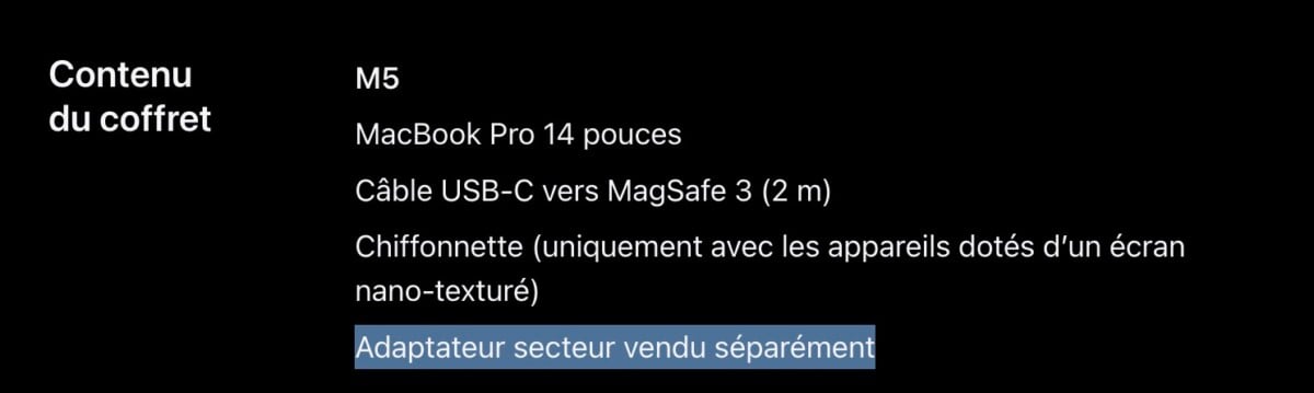 La mauvaise nouvelle, écrite en petit en bas des caractéristiques techniques : l’adaptateur secteur est désormais vendu séparément.