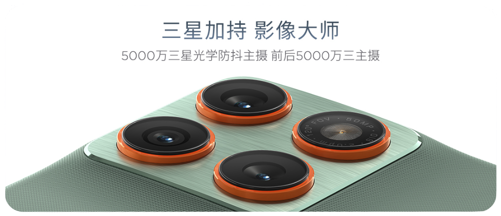 Côté photo, le module arrière se compose d’un capteur principal de 50 Mpx (d’origine Samsung) et d’un ultra grand-angle de 50 Mpx également, avec un champ de vision de 120°.