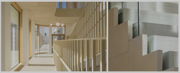 La proposition des architectes repose sur une métaphore forte : un bâtiment-paysage, pensé comme une calanque urbaine. Le projet s’articule autour de trois éléments constitutifs de l’identité méditerranéenne : la roche, le végétal et la lumière, dans une composition apaisée. La pierre massive, extraite de la carrière de Beaulieu à Aix-en-Provence, constitue le socle du projet.