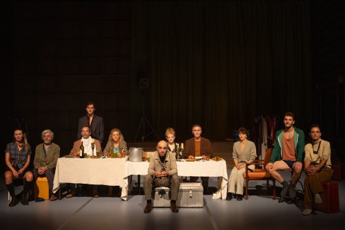 Où l’on retrouve l’écriture si particulière et reconnaissable de l’auteur du Pays Lointain, une langue travaillée avec une précision maniaque qui donne à chacun des personnages une épaisseur, une profondeur dramaturgique inouïe. Jean-Luc Lagarce était un grand styliste. Pour s’en convaincre il suffit d’écouter ici le monologue de Madame Tschissick (Elsa Lepoivre) expliquant à celui qui est son amant, Raban (Thomas Gendronneau), pourquoi elle ne renonce pas à son mari (Vincent Dissez). Un moment de théâtre et de littérature, aussi, où l’on est saisi de la toujours modernité d’un auteur parti trop tôt sachant fouailler l’âme humaine dans toute sa complexité, son ambivalence et que la langue au scalpel, dans ses pleins et déliés, révèle au plus juste. Pour qui s’empare de cette écriture, de son rythme interne, de sa complexité qui jamais ne les broie mais les exhausse, c’est le dévoilement pudique d’une relation complexe au monde. Jusque dans leur silence buté, leur sidération parfois devant ce qui est proféré, avec force ou énoncé presque malgré-soi. Pas pour rien que les pièces de Jean-Luc Lagarce soient avant tout des pièces de troupe où la circulation de la parole, de ses enjeux, a son importance dramaturgique. Lui-même qui dirigeait La Roulotte, sa compagnie, n’écrivait que pour ses comparses, ses compagnons de route. Et la réussite de Clément Hervieu-léger tient justement à ça, d’avoir posé avec soin et la langue et la troupe au centre de sa mise en scène, en dessinant dans cette œuvre chorale les contours de chaque caractère différencié avec minutie, considéré chaque prise de parole, chaque échange, chaque incises que sont les monologues adressés autant à soi qu’au public, comme un acte déterminant.