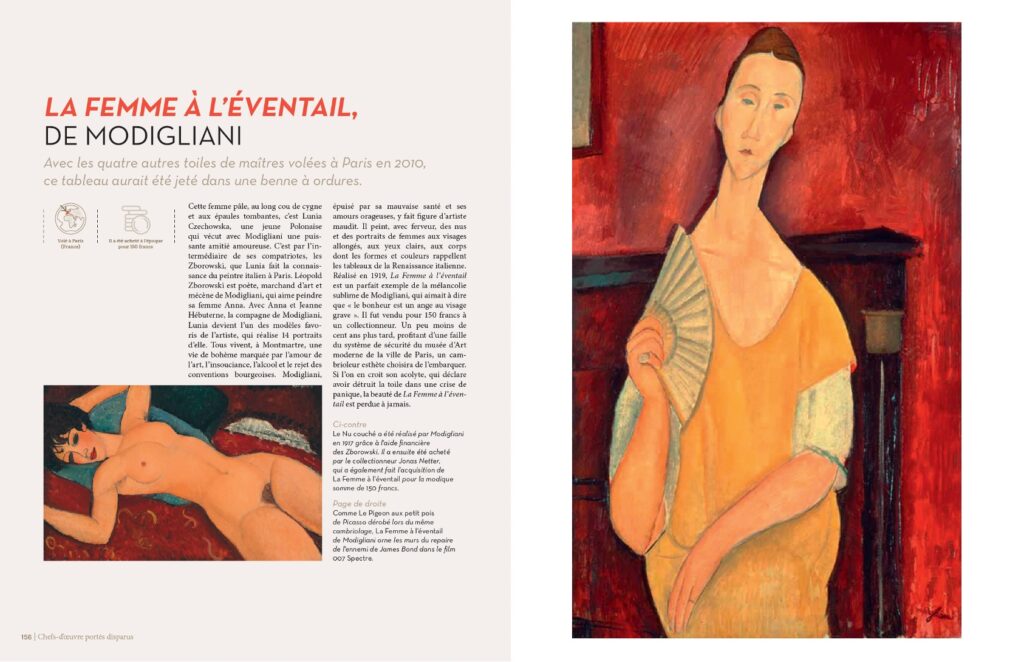 Plus près de nous, La Femme à l’éventail de Modigliani, volée à Paris en 2010 et probablement détruite, rappelle combien la beauté peut se perdre au cœur même de la modernité.