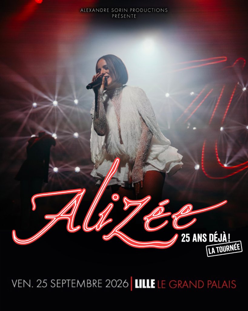 Vendredi 25 septembre 2026 à 20h, le Grand Théâtre de Lille Grand Palais accueillera le concert d’Alizée !