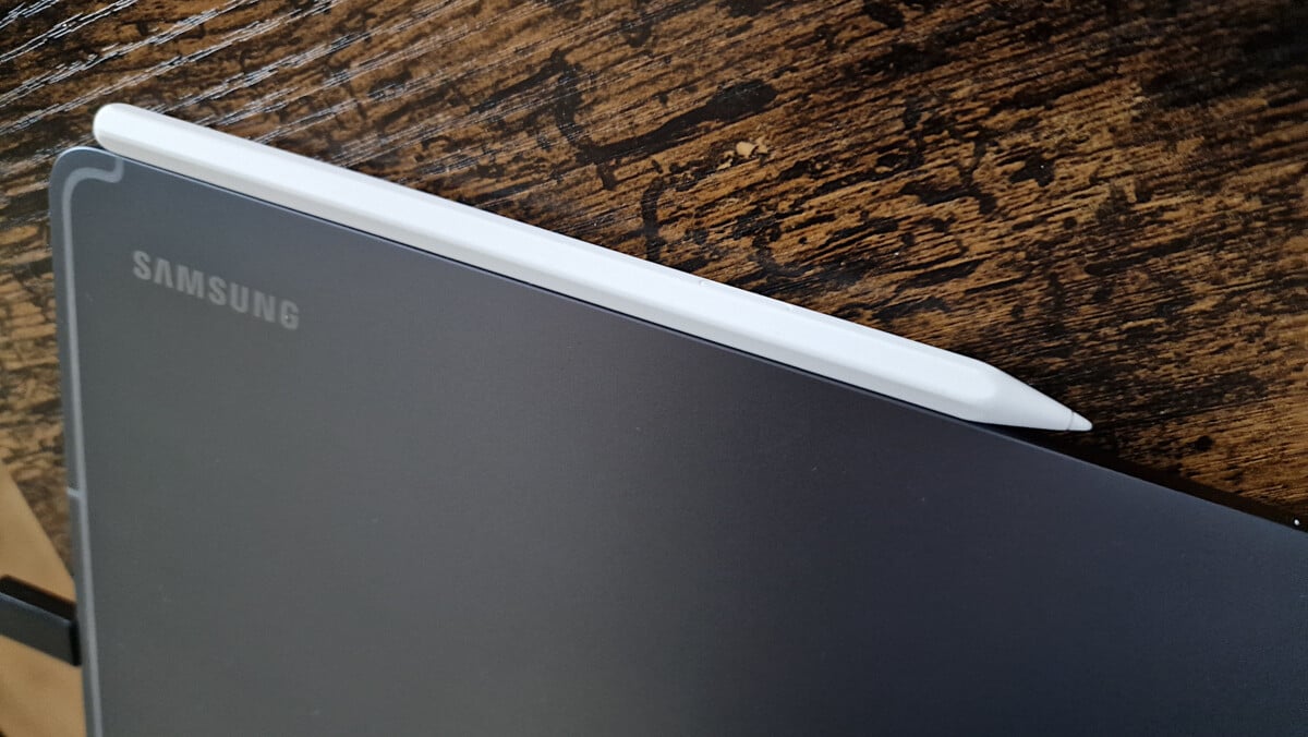 Enfin, la Galaxy Tab S11 Ultra est livrée avec son stylet, toujours pratique pour dessiner, prendre des notes, ou même utiliser certaines applications. Deux zones aimantées sur la tablette permettent de le maintenir fermement, ce qui peut aider certains à ne pas l’égarer, et de le recharger en même temps.