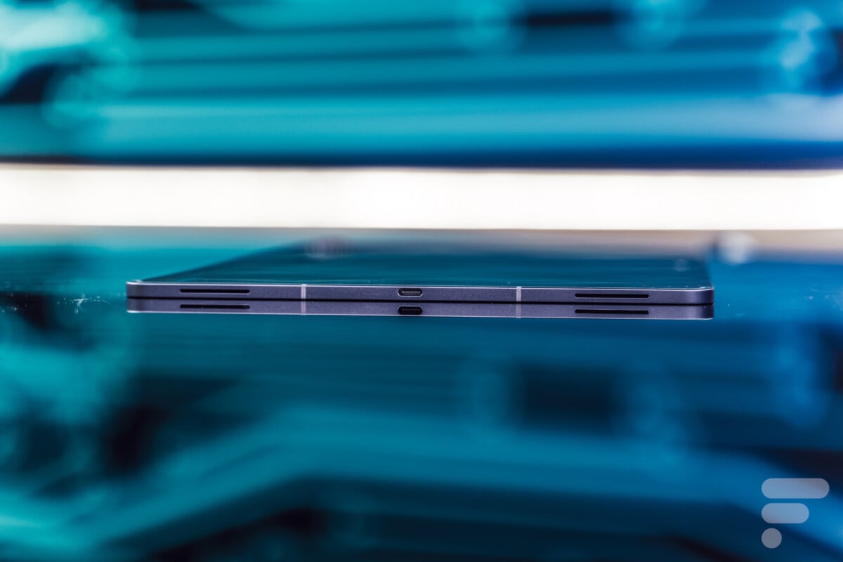 La tablette est équipée de quatre haut-parleurs, placés sur la tranche, de part et d’autre de l’écran. Et il faut reconnaître qu’ils délivrent une qualité audio assez bluffante, qu’il s’agisse de jouer, regarder des films ou écouter de la musique.