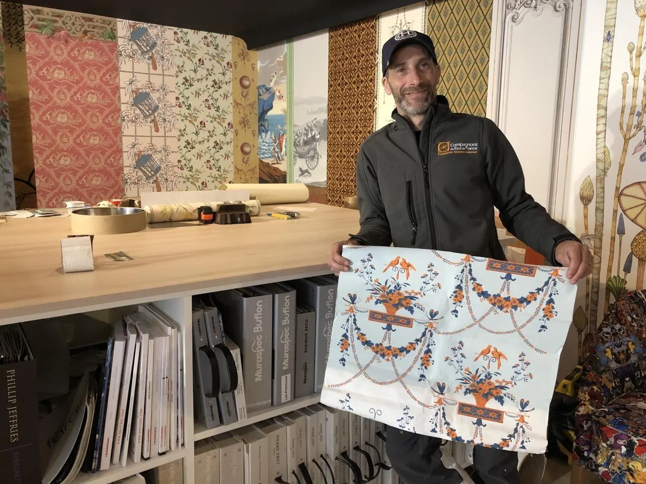 Arnaud Fouassier est peintre en bâtiment spécialisé dans l’installation du papier peint d’art, à Alençon, dans l’Orne. Le professionnel a posé un papier peint d’exception dans la maison historique de Georges Washington, dans le cadre de sa restauration.