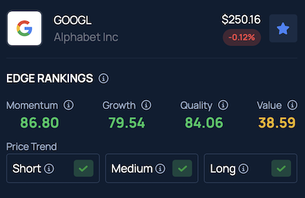 Les classements des titres Edge de Benzinga indiquent que GOOGL maintient des performances solides à court, moyen et long terme, avec une analyse complète disponible ici.