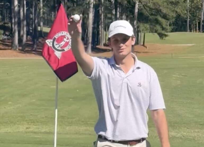 Engagé lundi au Chick-Fil-A Invitational à Rome, en Géorgie le joueur de l’université de Sewanee qui défendait les couleurs de l’équipe B des Tigers a débuté son premier tour sur le huitième trou un par 3 du Stonebridge Country Club en rentant un coup de fer 6 de 166 mètres.