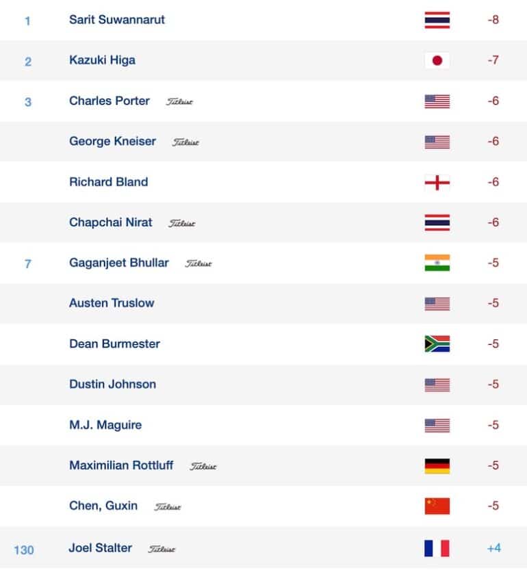 Le Thaïlandais devance d’un coup le Japonais Kazuki Higa, vainqueur à deux reprises cette saison, et de deux longueurs quatre joueurs dont le membre du LIV, Richard Bland.