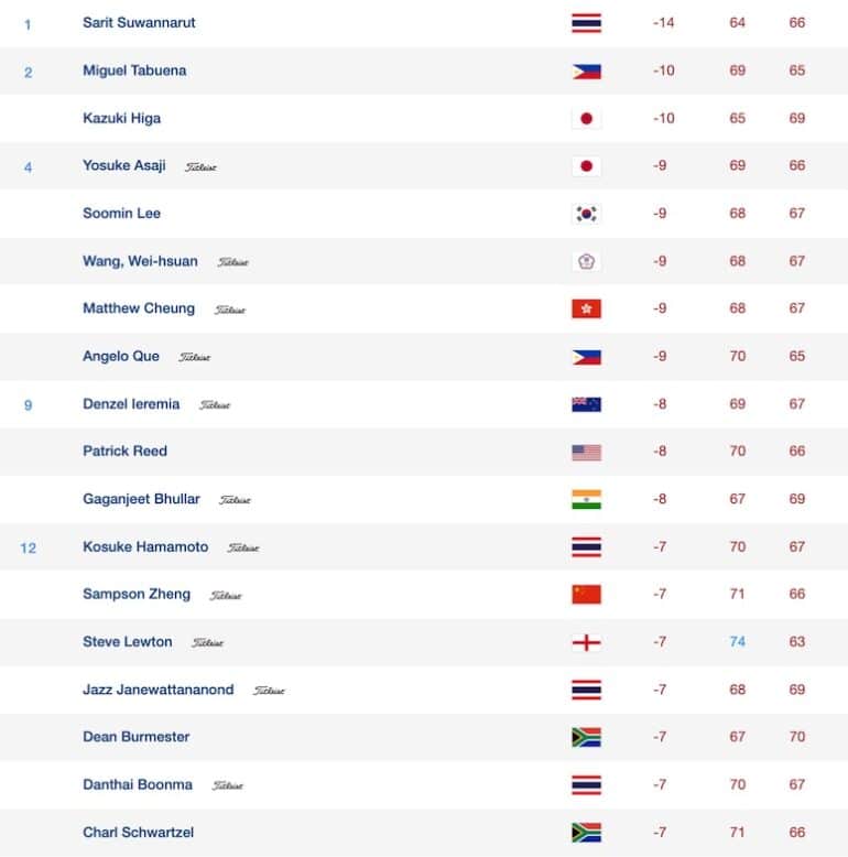 Le Thaïlandais devance de quatre coups le local de l’étape et le Japonais Kazuki Higa, vainqueur à deux reprises cette saison.