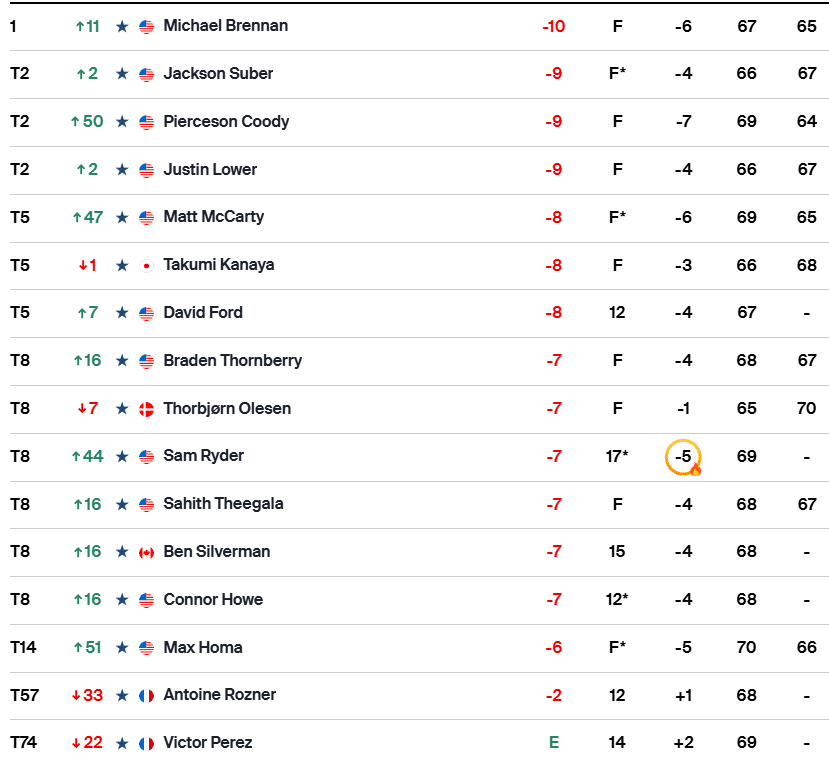 Après son passage en faculté du côté de Wake Forest (la même que Matt Fitzpatrick par exemple), Brennan a roulé sa bosse du côté du PGA Tour Americas (la troisième division), dont il vient de remporter l’ordre du mérite. C’est cette performance qui lui vaut l’honneur d’une invitation cette semaine sur le Black Desert Resort. Un ticket d’entrée qu’il honore à merveille puisqu’il occupe la tête du classement en -10 total après deux cartes de 67 (-4) et 65 (-6).