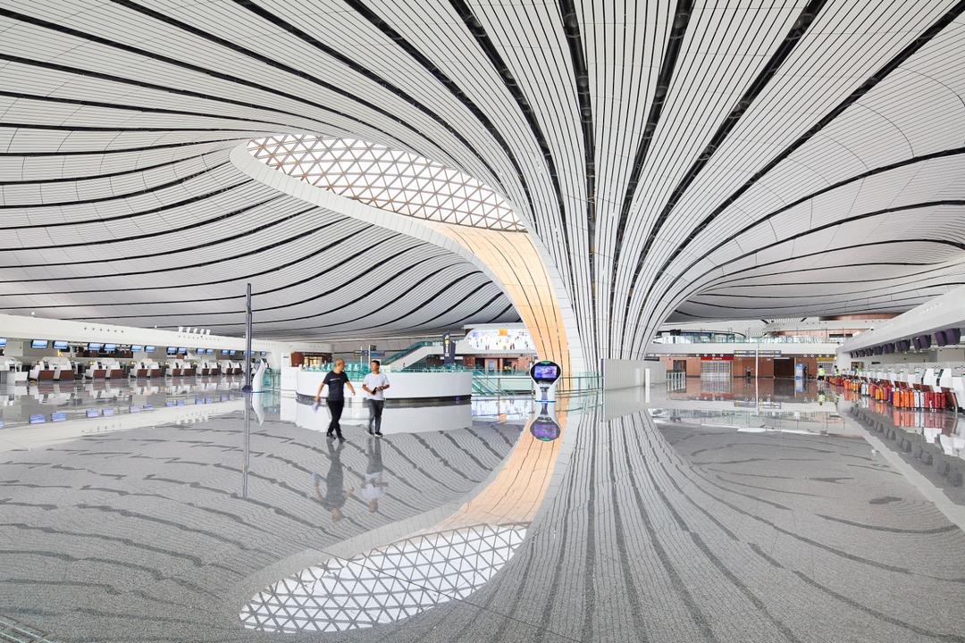 L’intérieur de l’aéroport international de Pékin-Daxing, ouvert en 2019. © Hufton+Crow
