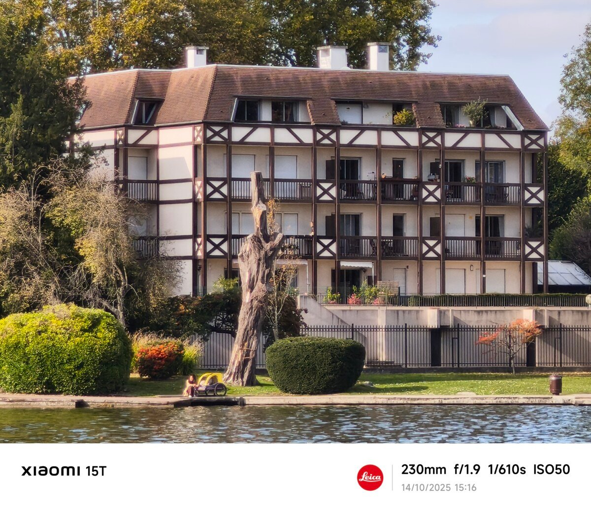 - Un téléobjectif 2x (46 mm). Le capteur de ce dernier, d’une définition de 50 mégapixels, n’est pas stabilisé, comme celui du 15T Pro (qui a de plus une focale plus grande, de 115 mm, ce qui correspond à un zoom optique 5x).