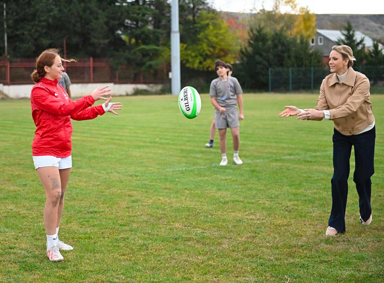 Charlène et Gareth ont pris la direction de Martkopi, une bourgade de moins de 8000 habitants, à l’est du pays. La princesse Charlène souhaitait accompagner les jeunes rugbymen monégasques qui participaient à un stage de préparation. La princesse Charlène a visité le Centre d’entraînement de la Fédération géorgienne de rugby, un site reconnu pour l’excellence de ses infrastructures, avant de soutenir les rugbymen monégasques depuis les tribunes.