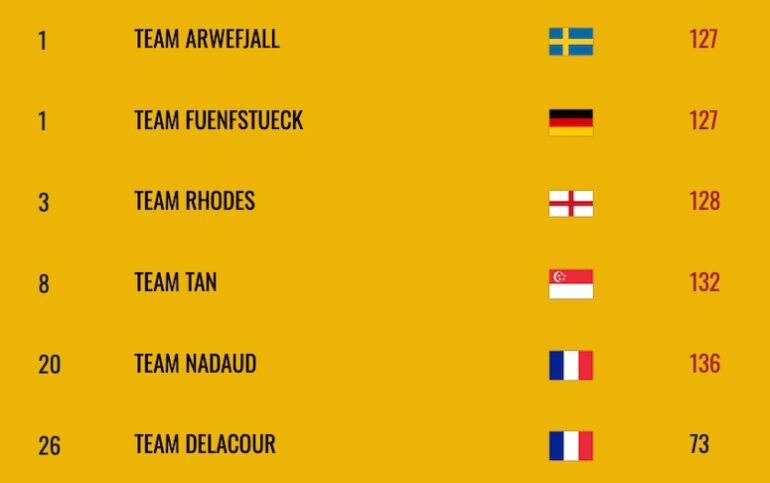 L’équipe de cette dernière, victorieuse au PIF London Championship en août, occupe la première place du classement par équipe avec celle de la Suédoise Kajsa Arwefjall.