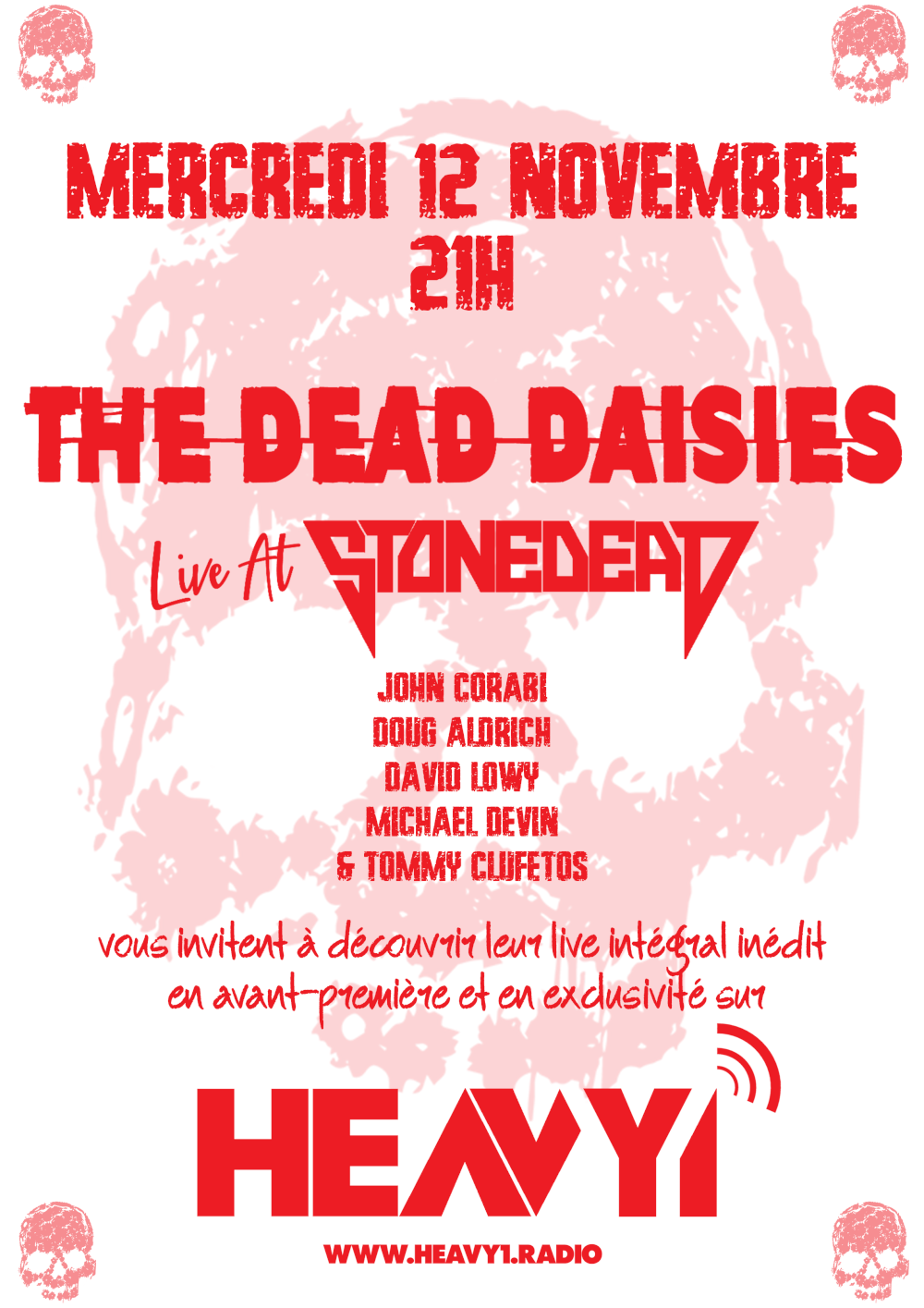 Le 23 août dernier, THE DEAD DAISIES participait au Stonedead Festival dans le comté de Nottingham, en Grande-Bretagne. « Live At Stonedead », témoignage audio du concert, sera dispo à partir du 14 novembre, uniquement en version digitale, et à écouter dans son intégralité en avant-première le mercredi 12 dès 21h sur HEAVY1