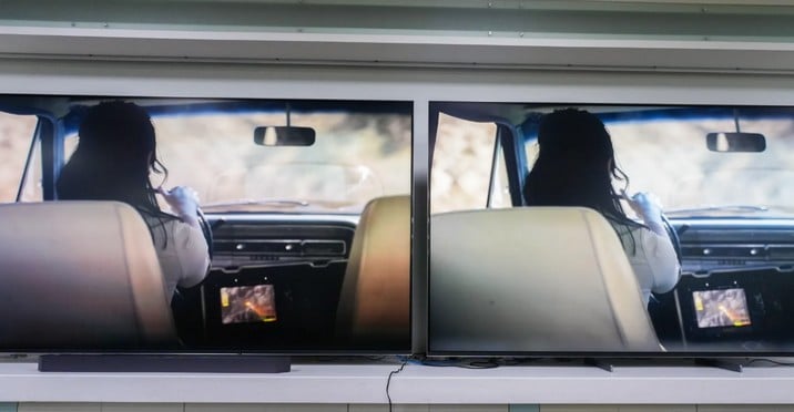 D’après les vidéos de démonstration que j’ai visionnées, les éléments qui perdraient en détails dans les scènes sombres, comme les boutons et les interrupteurs des consoles centrales des voitures, apparaissaient au contraire plus nets grâce à un contraste plus élevé. Les textures et les détails des cheveux étaient également plus distincts sur l’échantillon HDR10+ Advanced.