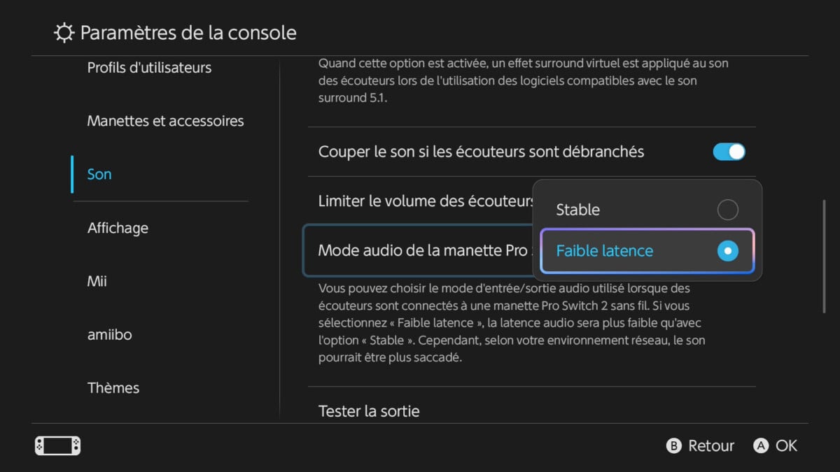 La Switch 2 propose désormais deux modes audio pour la manette Pro sans fil :
