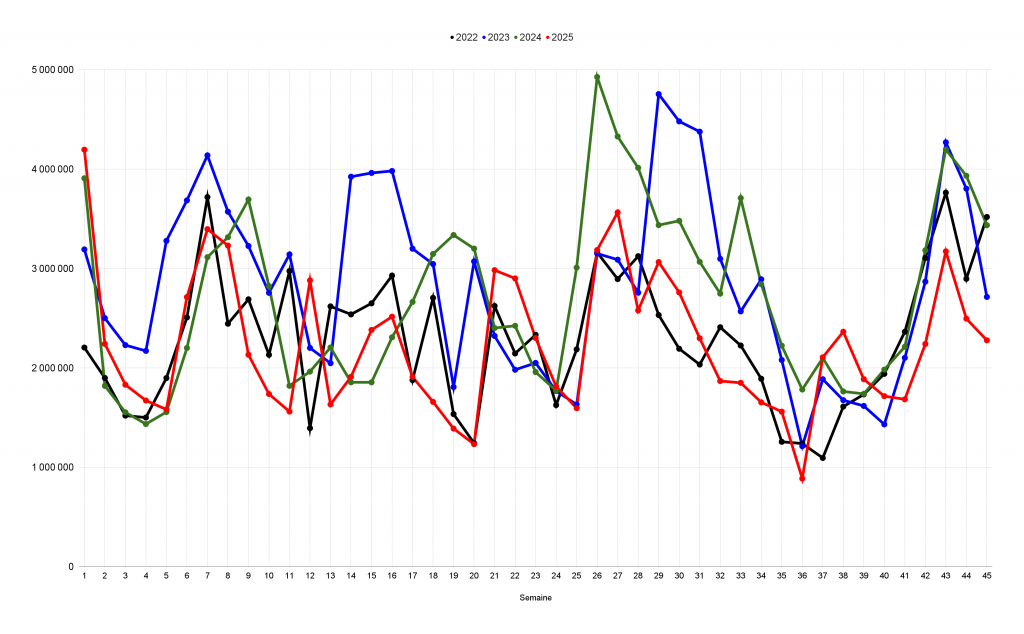 Entrées réalisées du 5 au 11 novembre 2025 :
