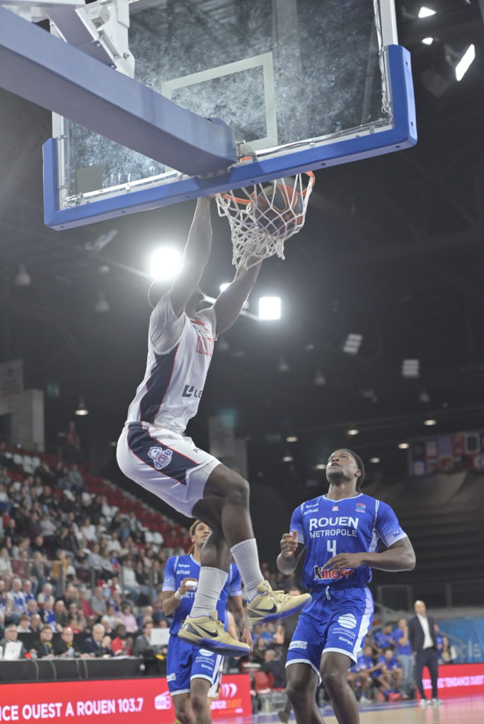 Q1 – 24/23 Les hostilités ont eu beau être déclenchées par CROFT deuxième marqueur de la division (17.3 Pts/Moyenne), ce sont bien les nantais qui entrent le mieux dans cette partie grâce notamment à KANGUDIA et sa double réussite derrière l’arc (4/11-4ème). L’entrée en jeu de l’ancien « artilleur » nantais BIGOTE, vacalmer les ardeurs nantaises…Deux lancers de DJEDJE, les sept points consécutifs du nouvel entrant cumulés à un primé de CROFT permettent aux locaux de reprendre les commandes (16/13-7ème). VAN EYCK, bien remis de son choc à l’épaule à Tours est bien présent et il (18/17-9ème) le fait savoir à la défense rouennaise. KENSMIL et un BOUBA l’autre ancien nantais sont en réussite aux lancers-francs et Rouen bascule en tête en fin de premier quart temps (24/23-10ème).