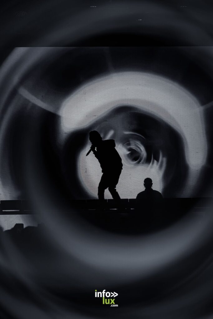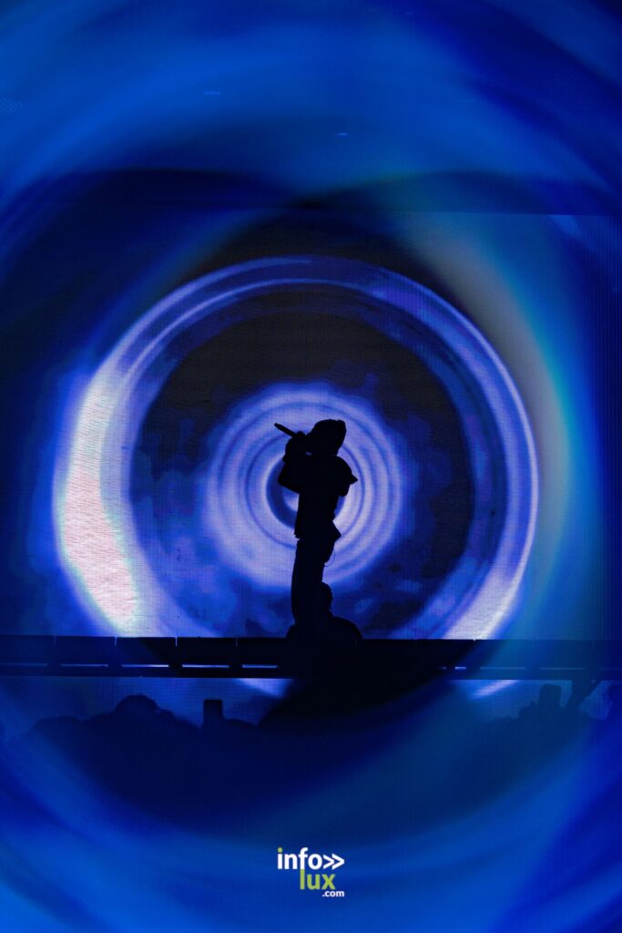 Les jeux de lumière, eux, alternent entre des flashs rapides qui dynamisent les morceaux les plus énergiques, et des teintes plus chaudes lorsqu’il se livre davantage. L’ensemble est fluide, cohérent, pensé pour amplifier chaque titre.