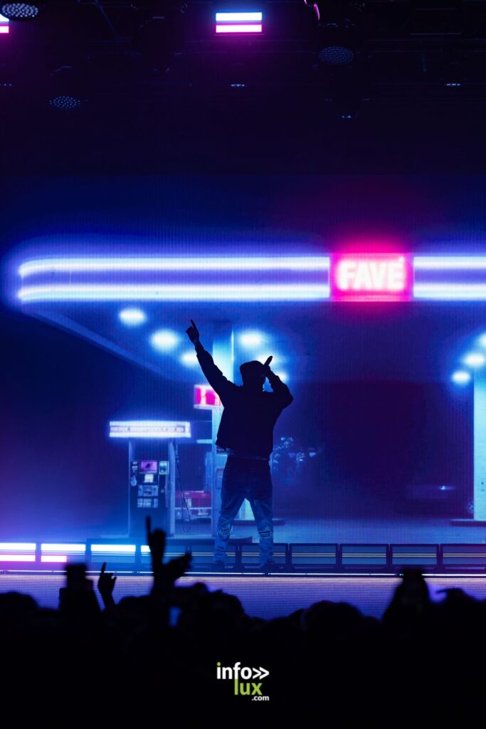 Sur scène, Favé n’a rien perdu de son énergie : flow précis, déplacements constants, interaction directe avec la foule. Le public nancéien, déjà chauffé dès les premières minutes, accompagne chaque refrain, chaque gimmick, créant une atmosphère complice qui ne retombera jamais.