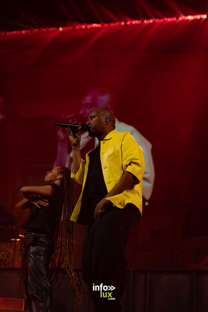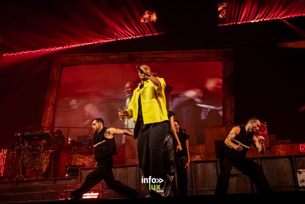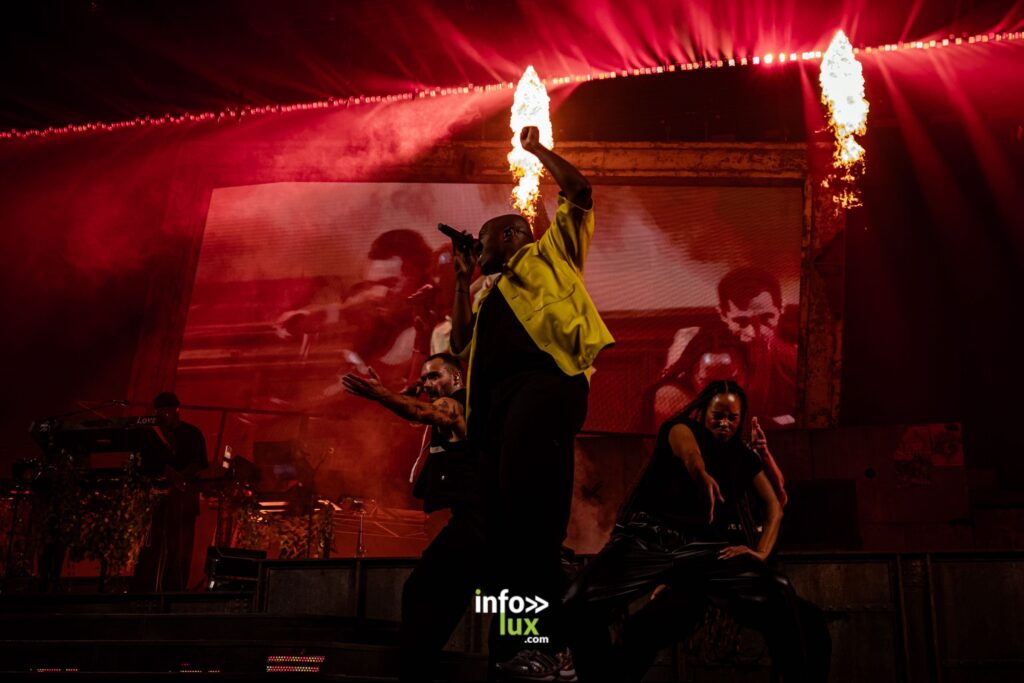 Entouré de danseurs, de musiciens et d’un dispositif visuel parfaitement orchestré, Soprano livre un spectacle calibré, mais jamais froid. Les transitions s’enchaînent sans temps mort : lumières rouges et flammes pour les phases intenses, bleu profond pour les moments plus introspectifs, jaune saturé pour les grands hymnes festifs.