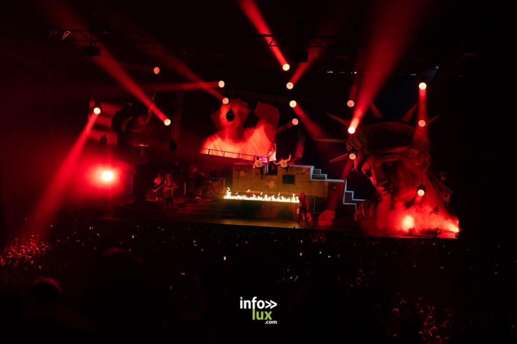 Et puis il y a le feu : une longue rampe de flammes jaillissant devant les artistes, donnant à plusieurs titres un caractère explosif, presque cinématographique. À chaque montée, la chaleur atteint les gradins.
