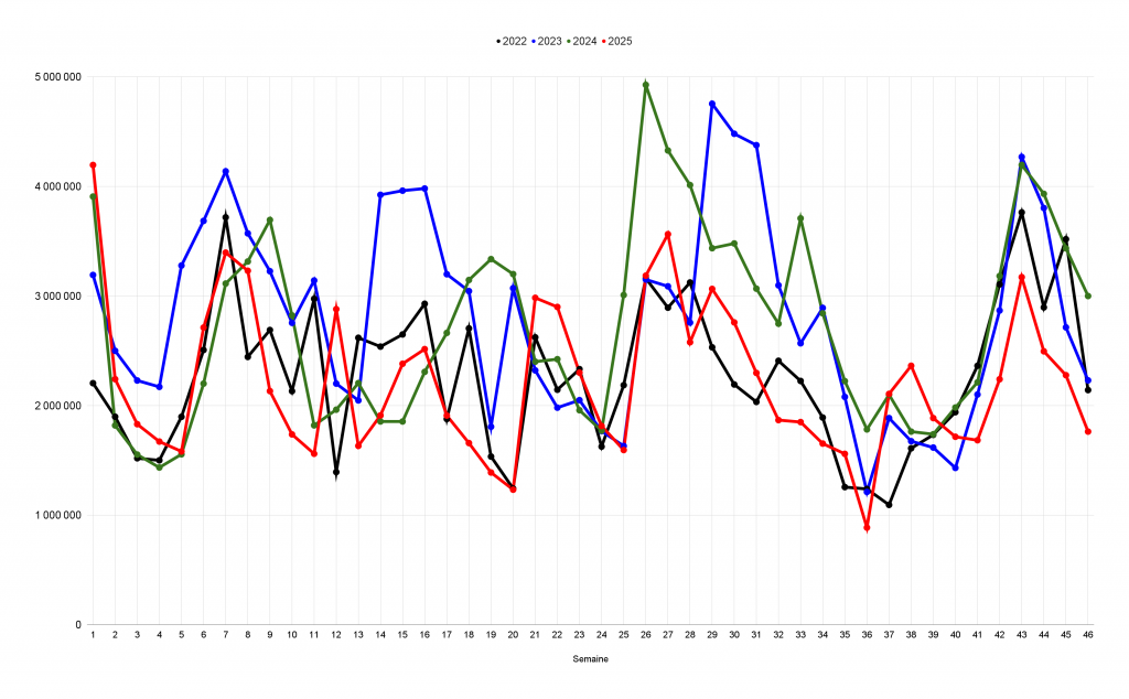 Entrées réalisées du 12 au 18 novembre 2025 :