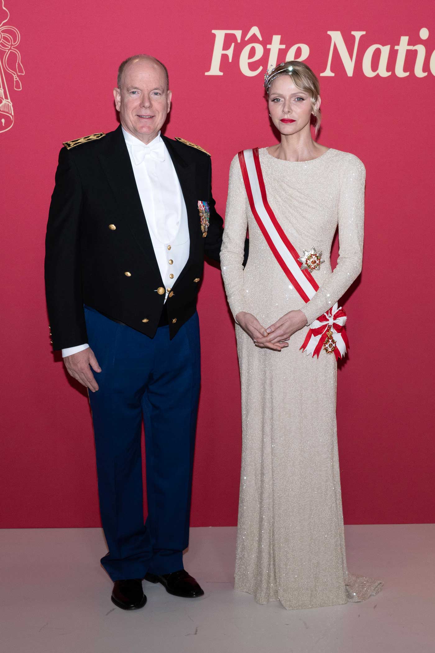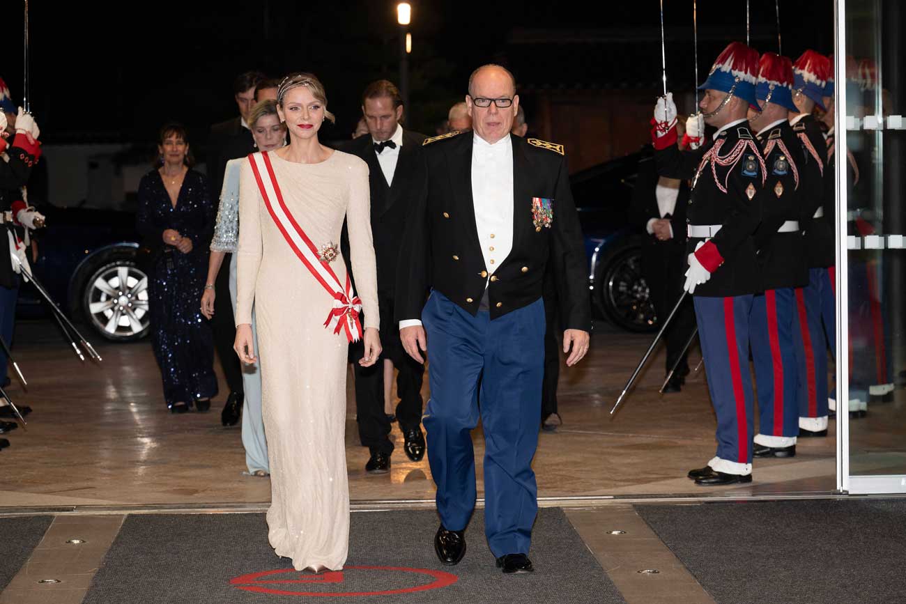 La fête nationale s’est conclue, comme chaque année, par un somptueux gala organisé au Grimaldi Forum. Le prince Albert II et la princesse Charlène ont fait une entrée remarquée, notamment en raison du diadème Écume de diamants que portait la princesse. Charlène rarement de diadème et celui-ci est celui qu’elle portait à son mariage.